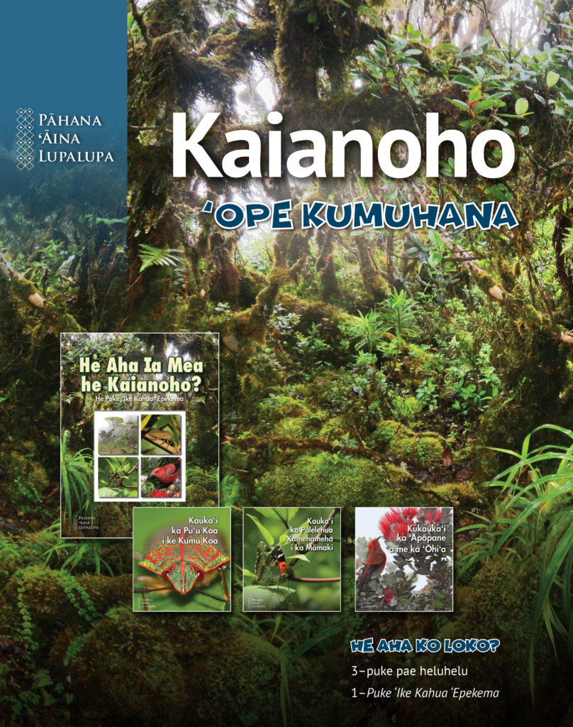 The Pāhana ʻĀina Lupalupa (PAL) series of Hawaiian culture-based science readers takes keiki on a fascinating journey into the diverse environments that make Hawaiʻi the special place that it is. From high mountain forests shrouded in clouds to coastal waters teeming with life, your budding reader will discover the amazing diversity of Hawaiʻi’s ecosystems and their unique inhabitants. Meet the koa bug, pāoʻo fish, wiliwili tree, and other Hawaiian endemic species found nowhere else in the world. Colorful photographs and illustrations along with informative text will delight and intrigue your young explorer, and Hawaiian language, traditions, and settings will help your keiki build a firm foundation in the rich, deep ʻāina of Hawaiʻi nei.